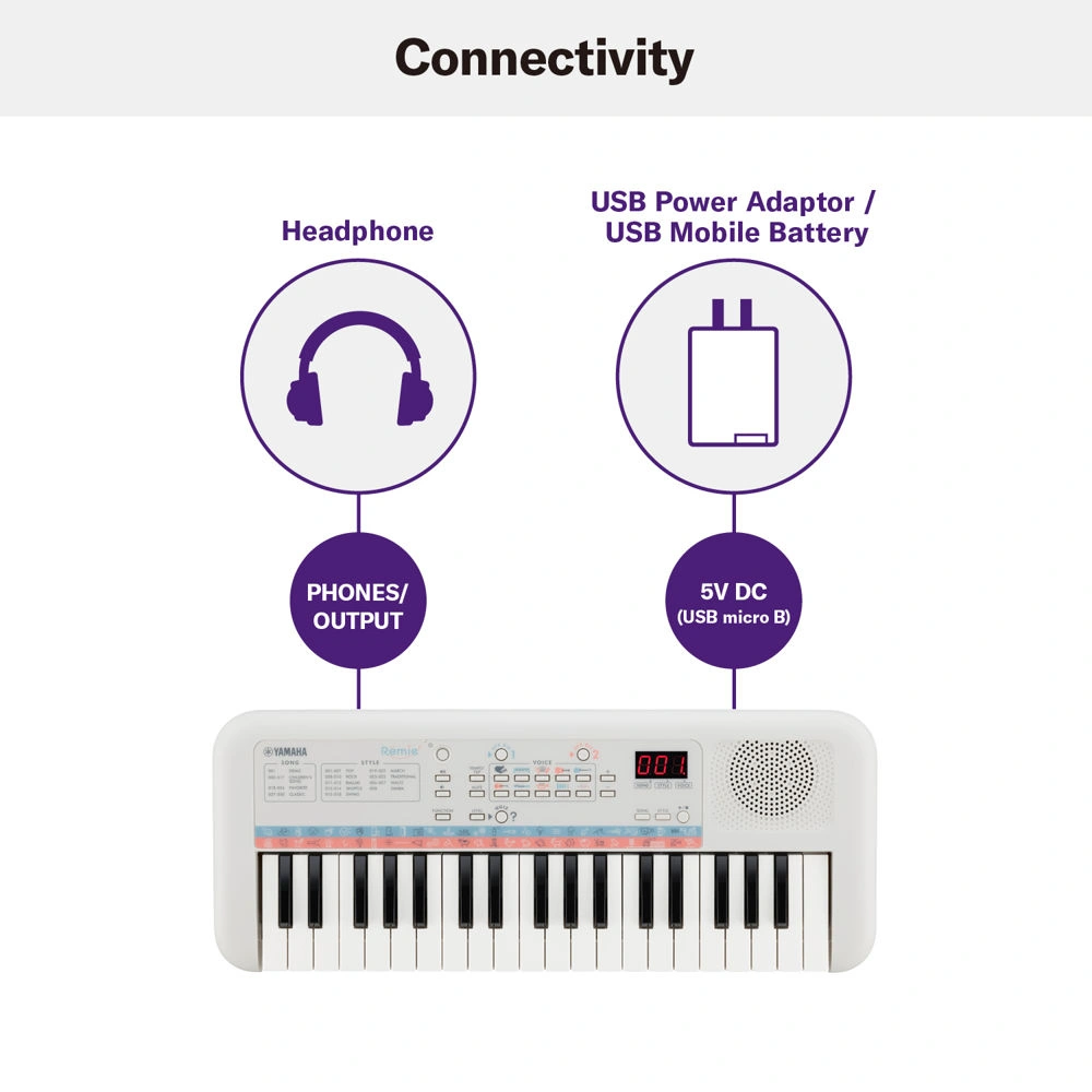 The Remie (PSS-E30) features beautiful sound, a keyboard made for small hands, and a songbook designed to help you guide your little one. The compact, lightweight instrument is easy for the young maestro to take out and put away on their own. Watch them smile as they discover the universal language of music! Beautiful instrument sounds as well as vehicle noises, animal noises, and other exhilarating sound effects stimulate your child’s curiosity. Quiz mode is a great way to naturally develop a musical foundation while having fun and asks your child to guess the sound effects it plays. It also features a more advanced mode that asks children to guess the right notes. The Remie (PSS-E30) comes with preset songs, all enjoyable versions of famous tunes your child will hear throughout their life.